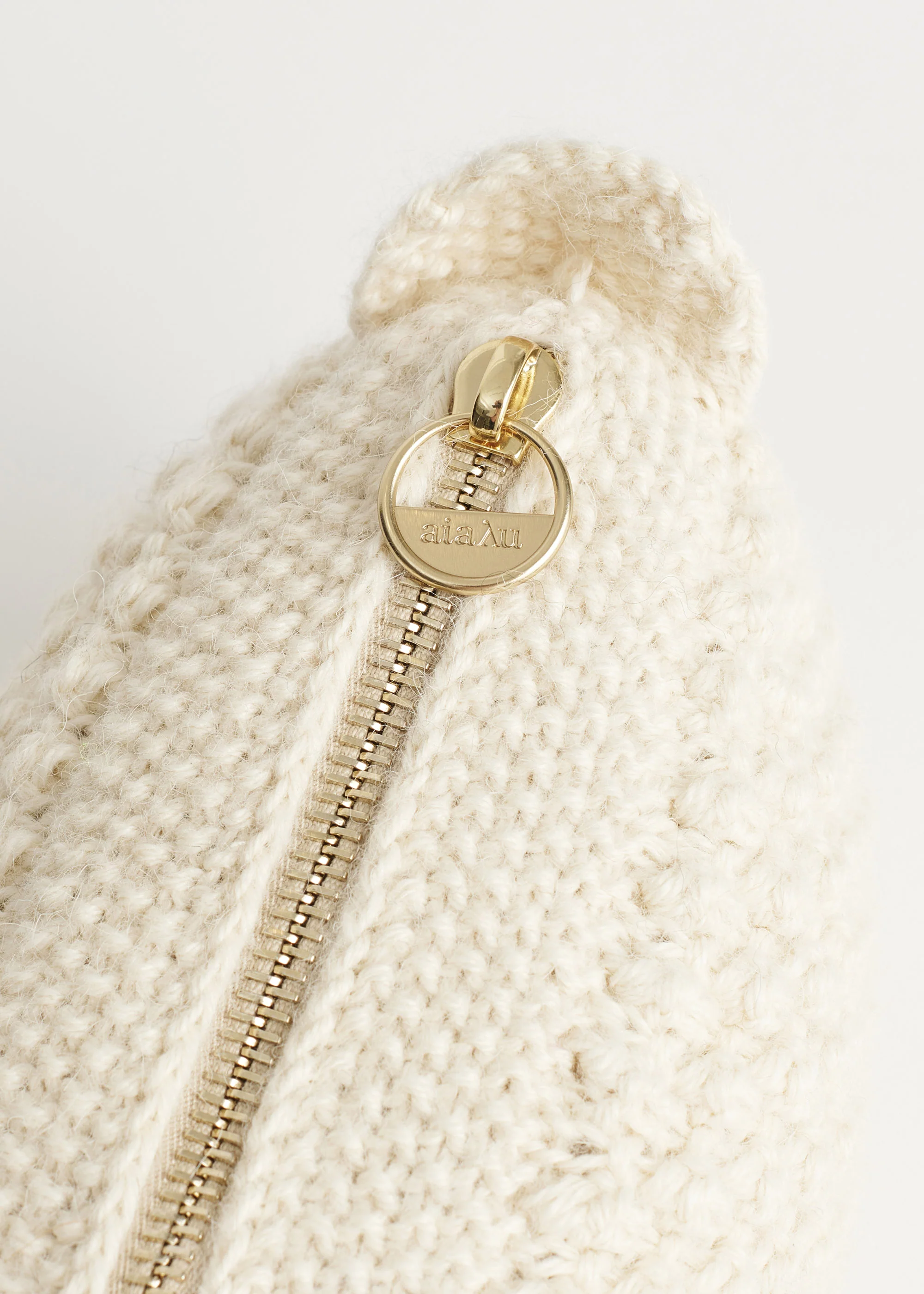 A hand-knitted clutch, made with love in Bolivia from the softest llama wool. Fully lined with practical details such as an interior pocket and zip closures. Designed in a beautiful bubble knit with a detachable chain that adds a distinctive expression and versatile use. Each handmade bag is signed on the lining with the embroidered initials of the woman who knitted it carrying her spirit and the essence of traditional craftsmanship.