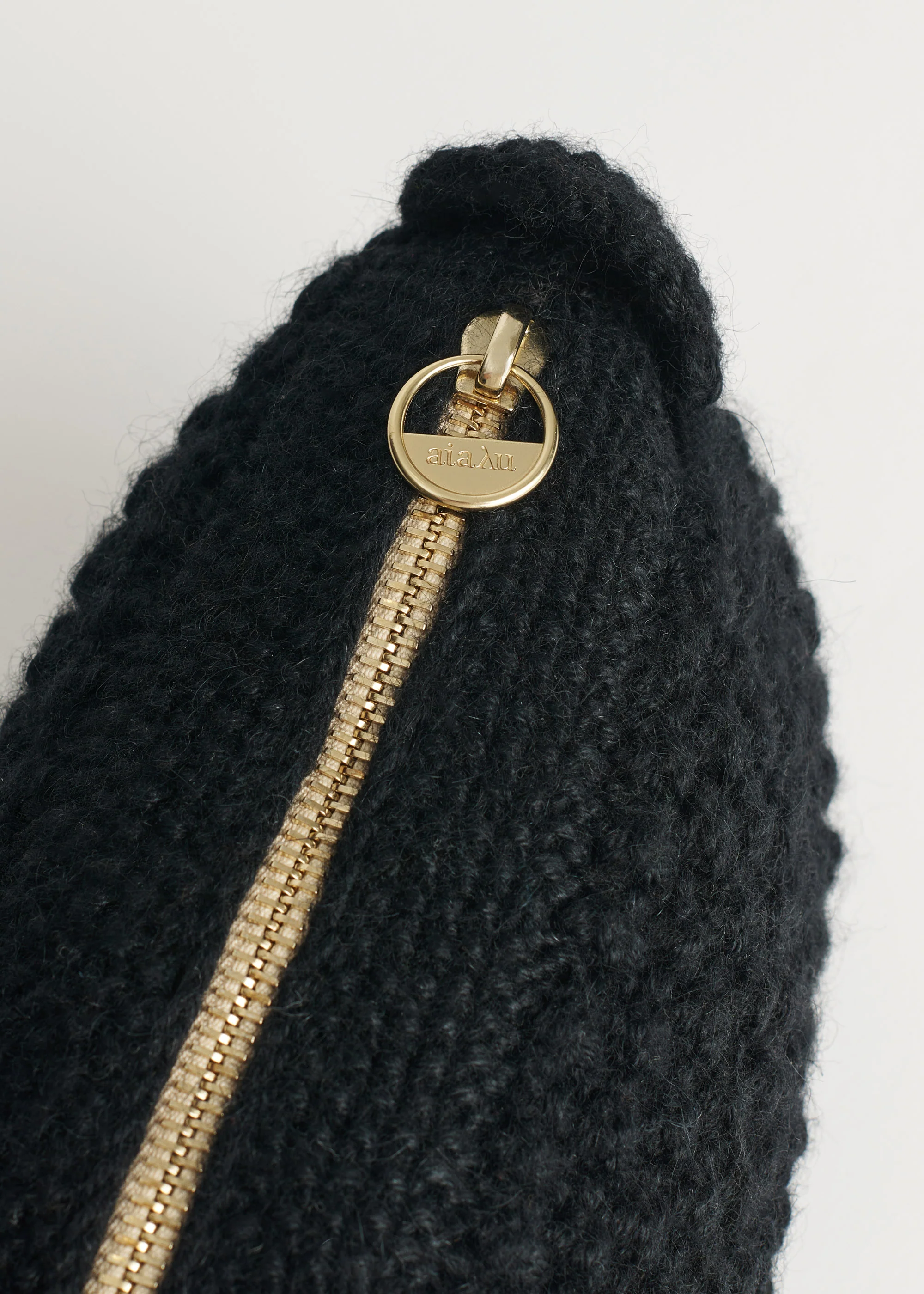 A hand-knitted clutch, made with love in Bolivia from the softest llama wool. Fully lined with practical details such as an interior pocket and zip closures. Designed in a beautiful bubble knit with a detachable chain that adds a distinctive expression and versatile use. Each handmade bag is signed on the lining with the embroidered initials of the woman who knitted it carrying her spirit and the essence of traditional craftsmanship.
